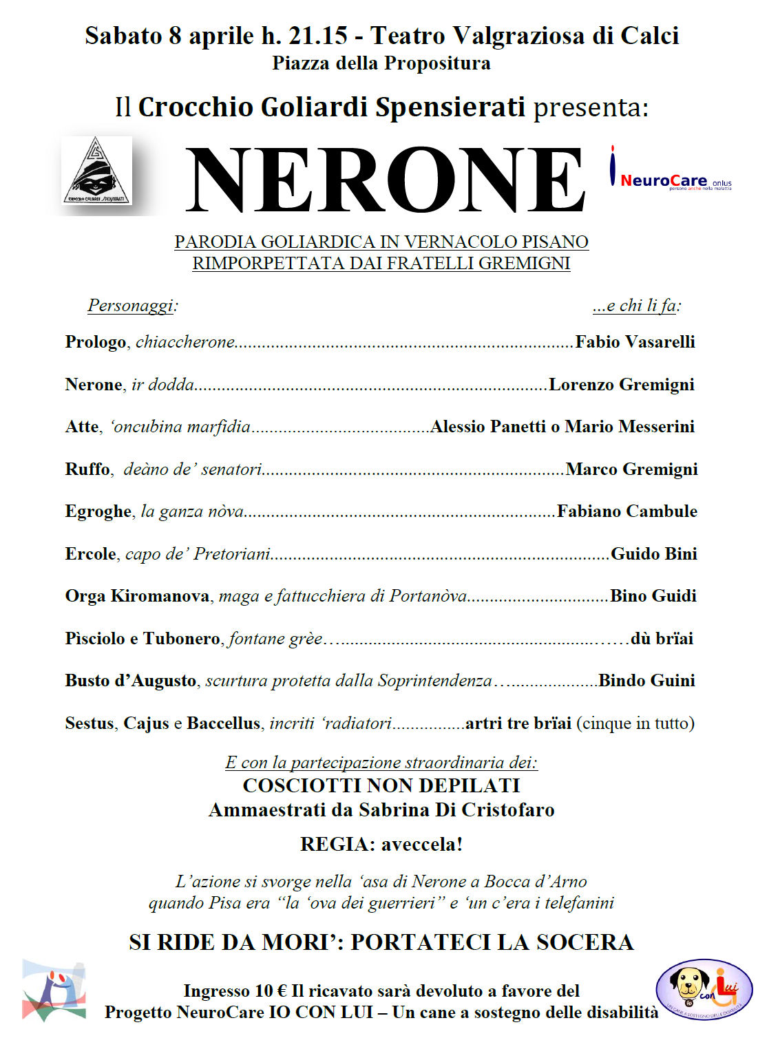 NERONE a Calci, sabato 8 aprile 2017 h 21:15